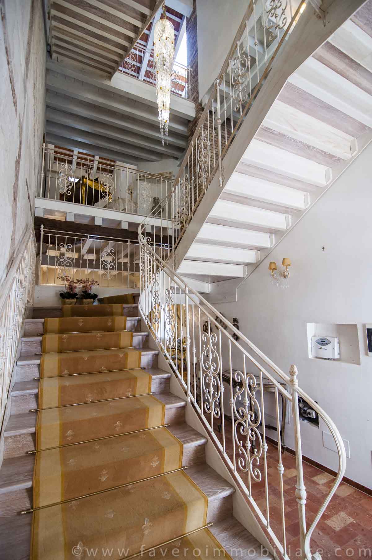 Entrando al piano terra scopriamo un ingresso dove affaccia anche la bella e preziosa scala che congiunge con i piani superiori; dall'ingresso si accede poi al soggiorno dotato di camino e zona tv, e di qui alla grande zona cucina-pranzo caratterizzata da una bella parete in pietra faccia-vista. Il piano terra è completato da sala lavanderia-stireria e da un elegante bagno.