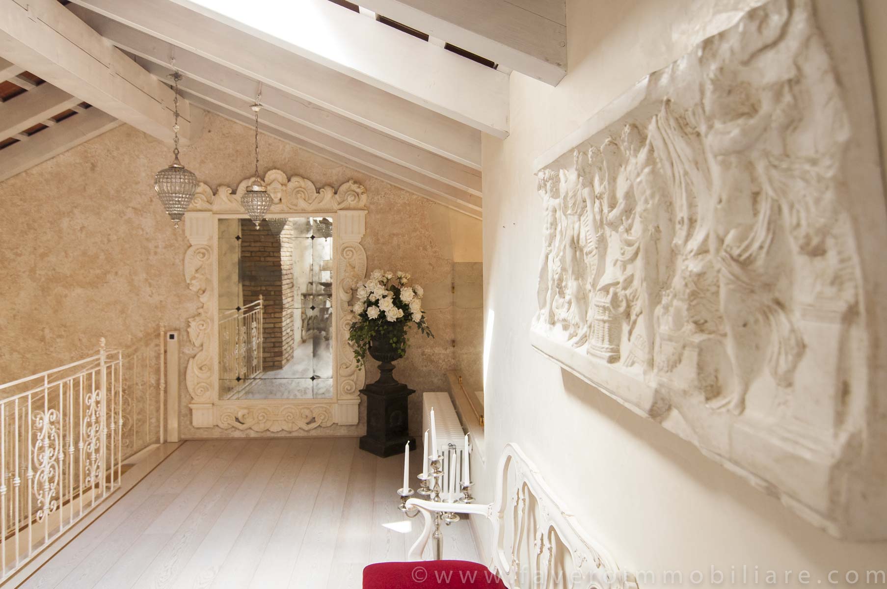 Al piano primo c'è un ampio pianerottolo dove trovano spazio armadiature, decorazioni ed un angolo salotto-studio; al piano ci sono 3 camere da letto (di cui una padronale completa di sala da bagno e sala guardaroba attrezzata) e un bagno.