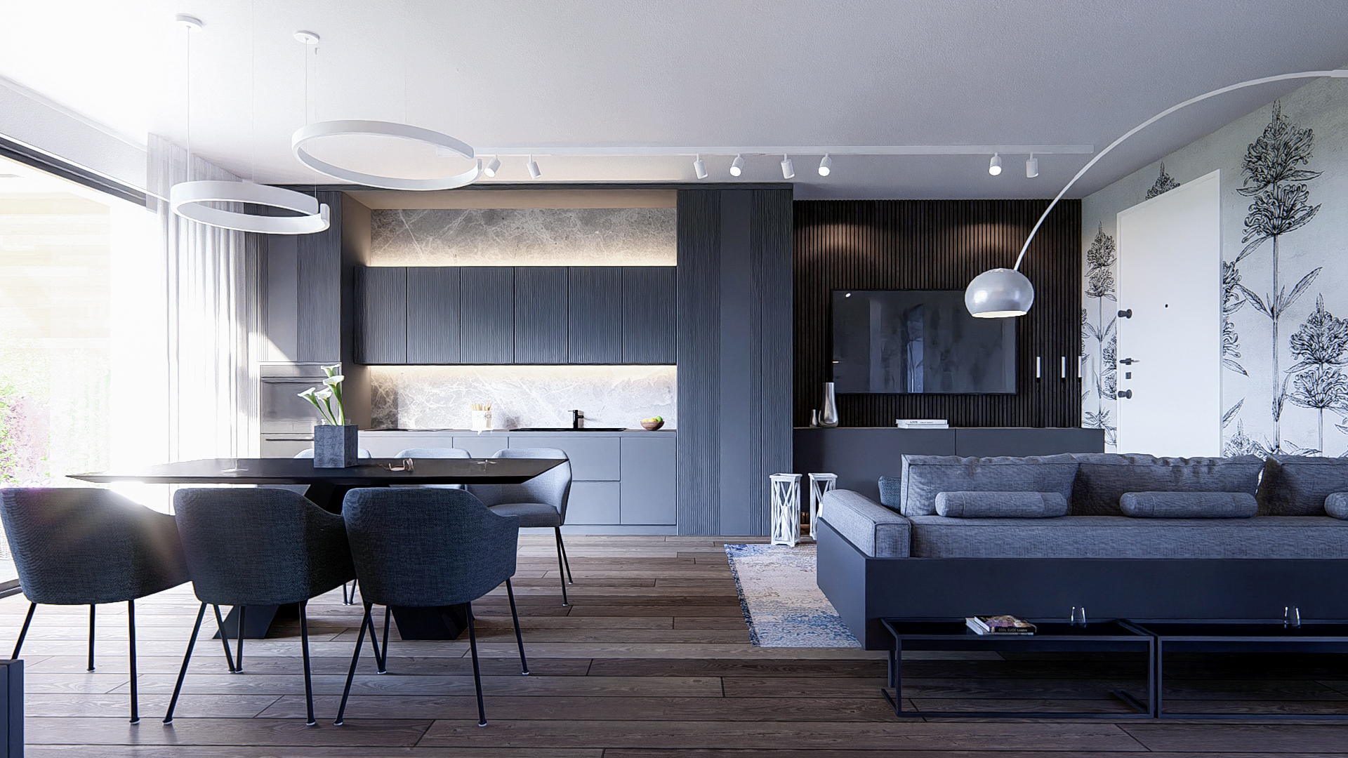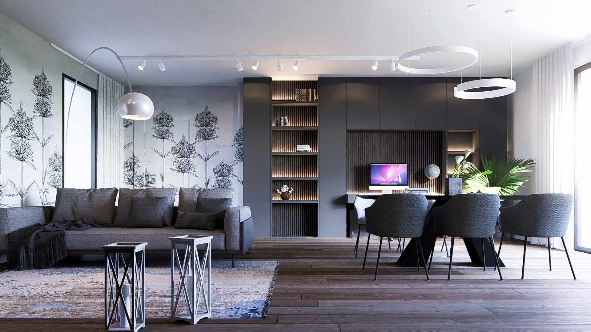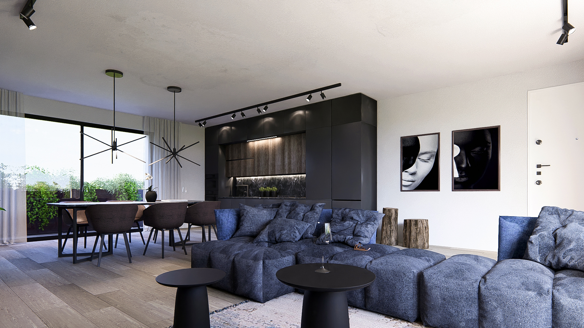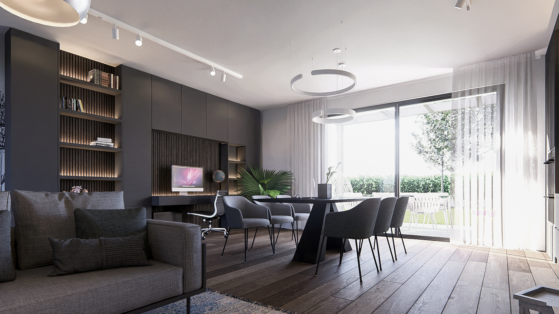 Composto da una zona living di 52mq con due grandi vetrate a sud e a nord, 2 terrazze grandi, 3 camere da letto (matrimoniale, doppia e singola), 2 bagni e ben 200mq di giardino privato con accesso diretto dal soggiorno (da scala privata).