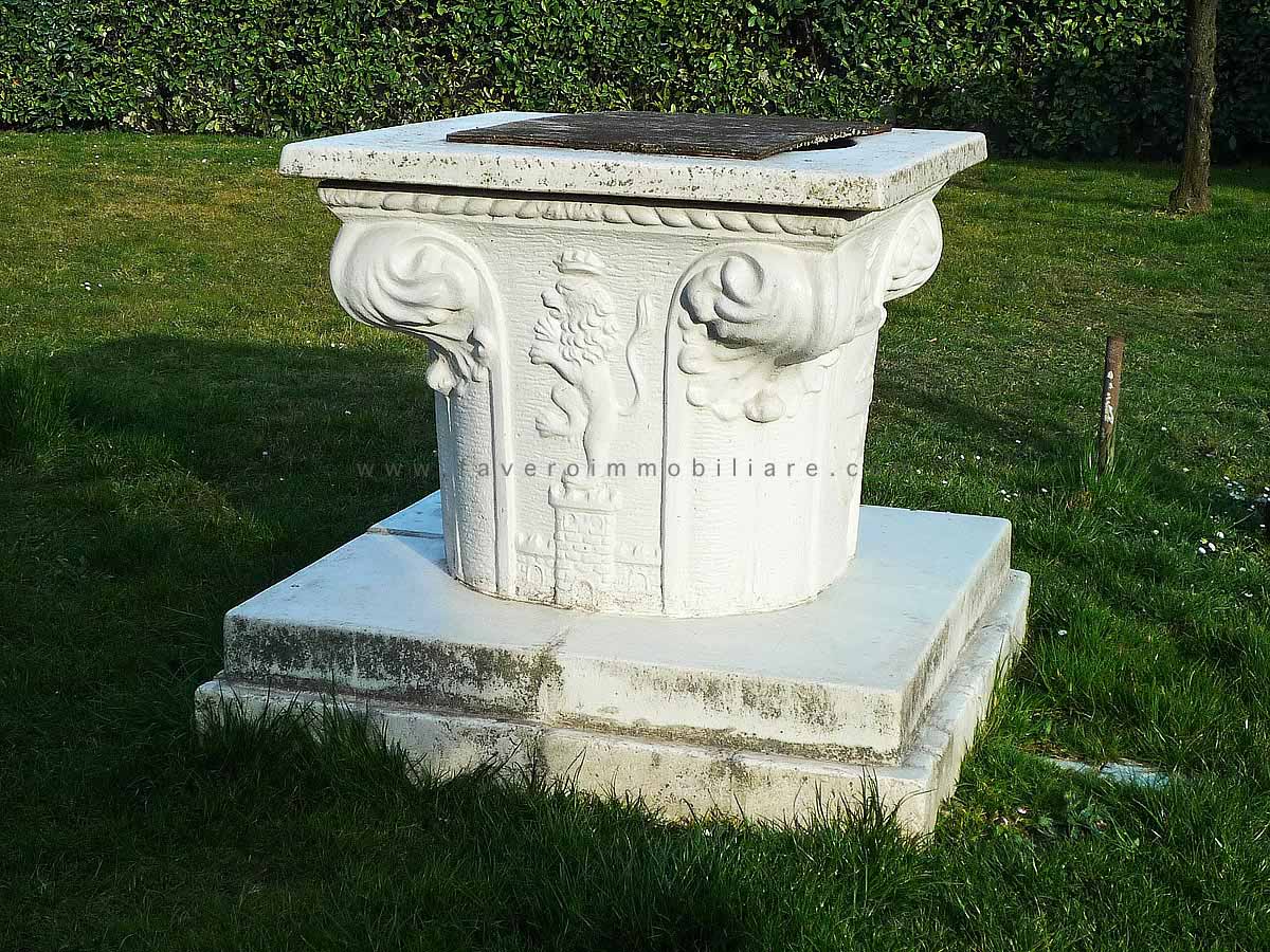Giardino privato con pompeiana per posti auto coperti e una vera da pozzo.